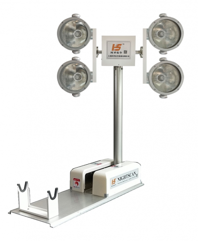 折疊式車載照明燈高度為1.2米,將燈具部件通過旋轉(zhuǎn)云臺(tái)固定在燈桿上,使用時(shí)將燈桿從水平立起,實(shí)現(xiàn)全方面的應(yīng)急搜索定位照明。