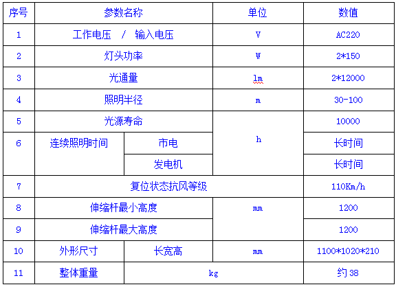 車載移動照明設備供電設備:選用220v電源或發(fā)電機供電,可連續(xù)長時間照明使用。