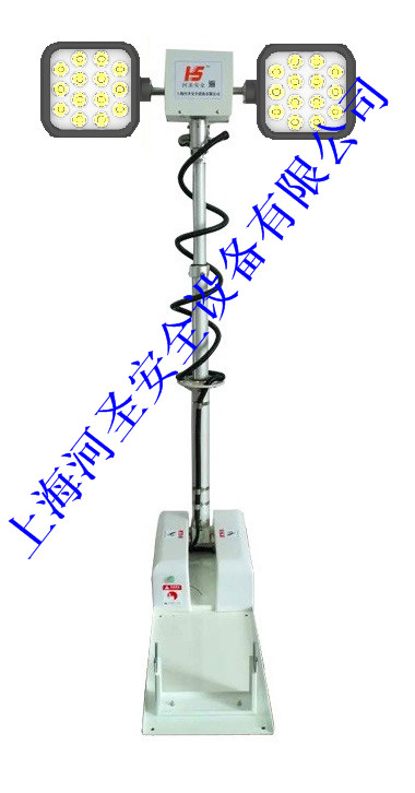 具備有起、落、升、降功能,設備從初始的水平位置起升到90度,再通過氣泵將升降桅桿上升增高至2.5米的高度,通過旋轉云臺水平380度垂直360度的全方位旋轉來完成定位照明。